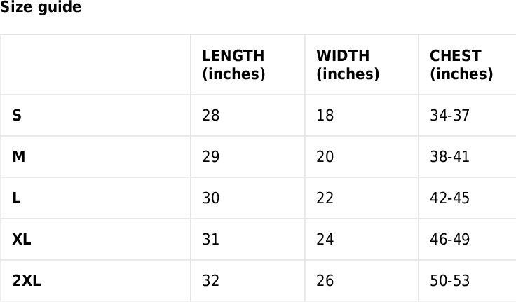 2XL: Width: 25.98, Length 32.01, Sleeve 10.00