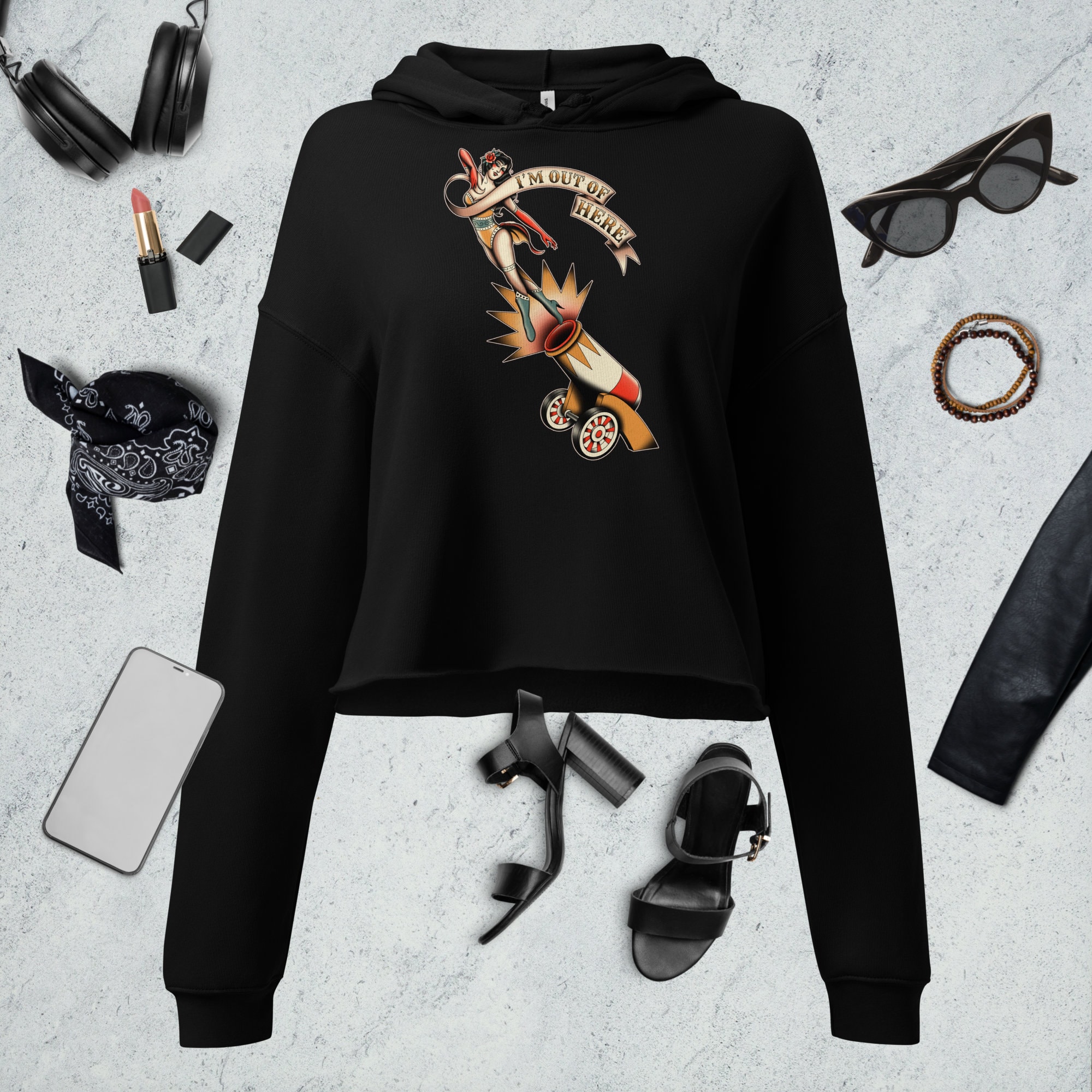 American Traditional Ink Crop Hoodie - I'm Out of Here - BC7502 | Stylish Fall Fashion