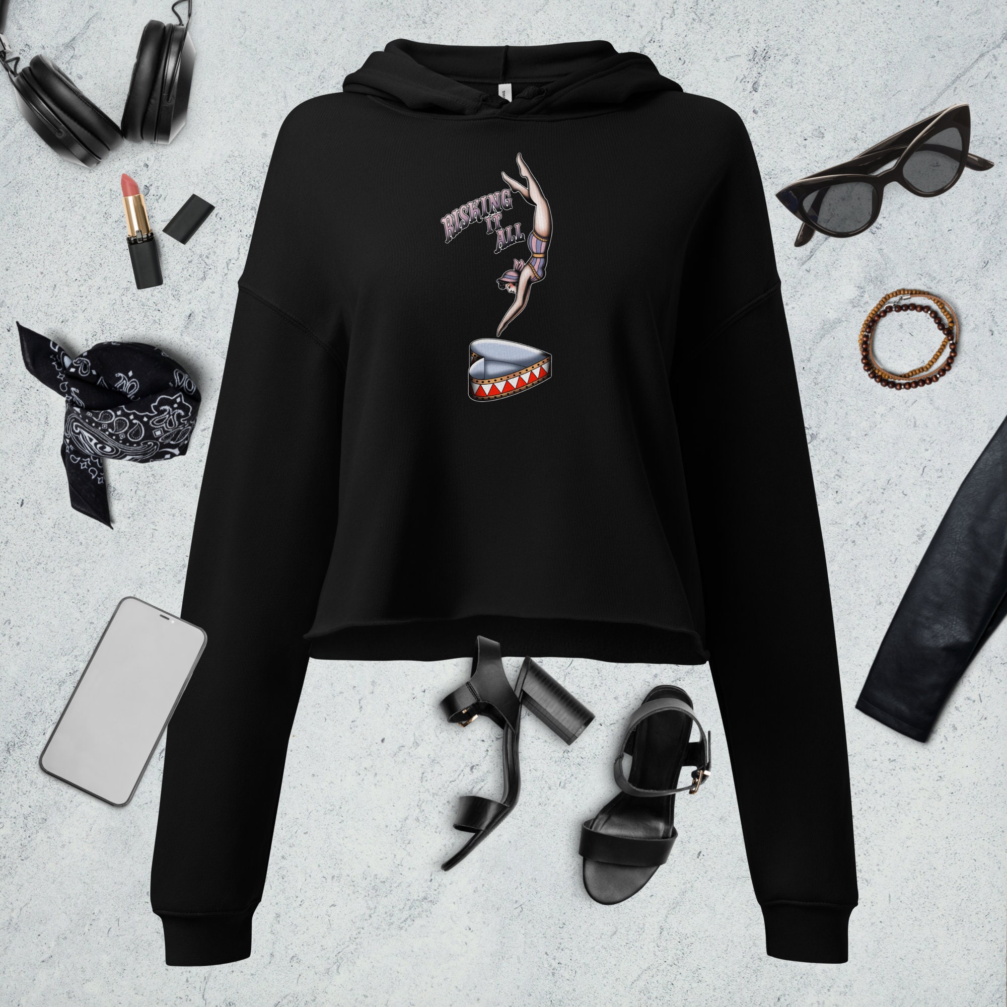 American Traditional Ink Crop Hoodie - Risking it All - BC7502 | Stylish Fall Fashion