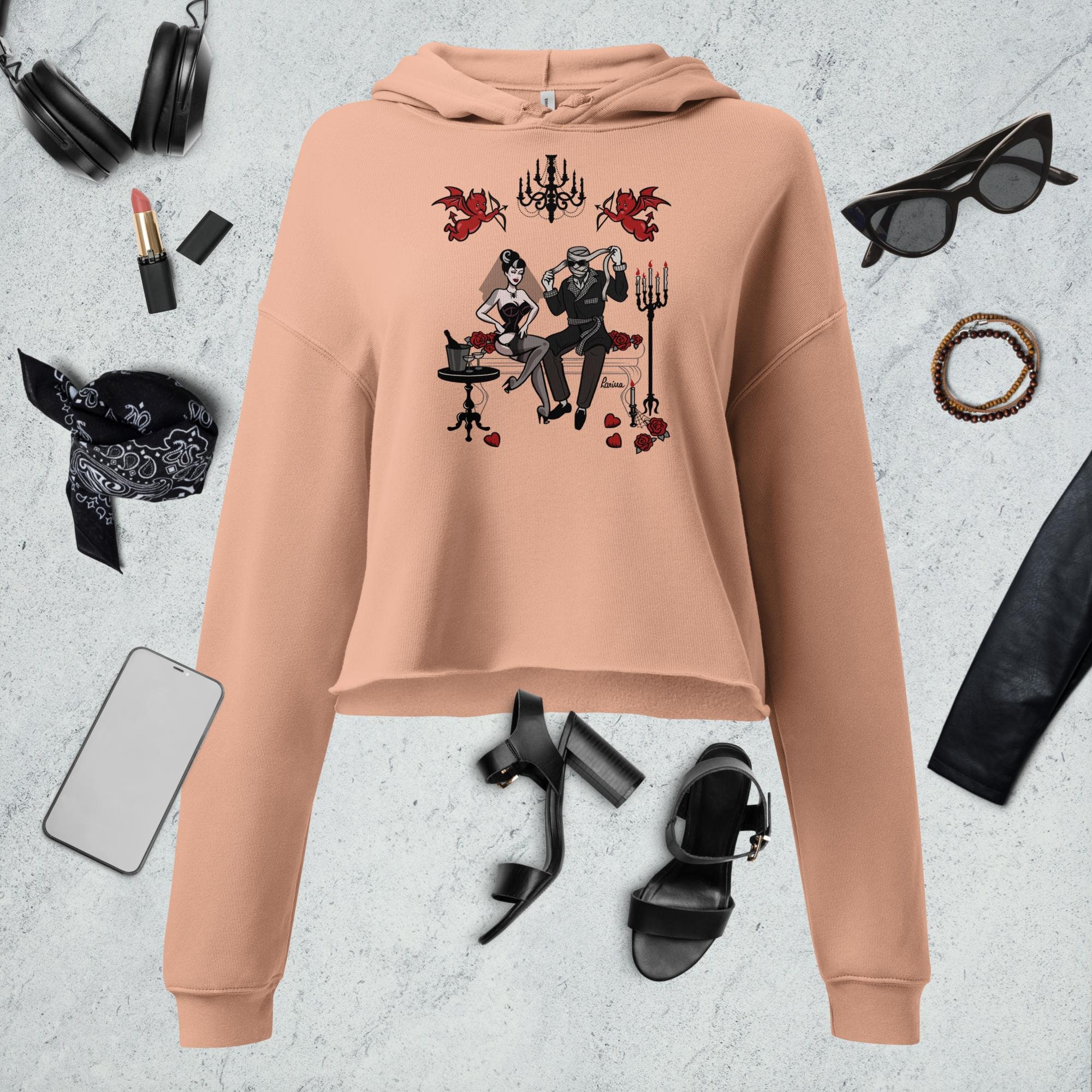 Black Widow x the Invisible Man, Crop Hoodie; A Spooky Pin-Up Illustration