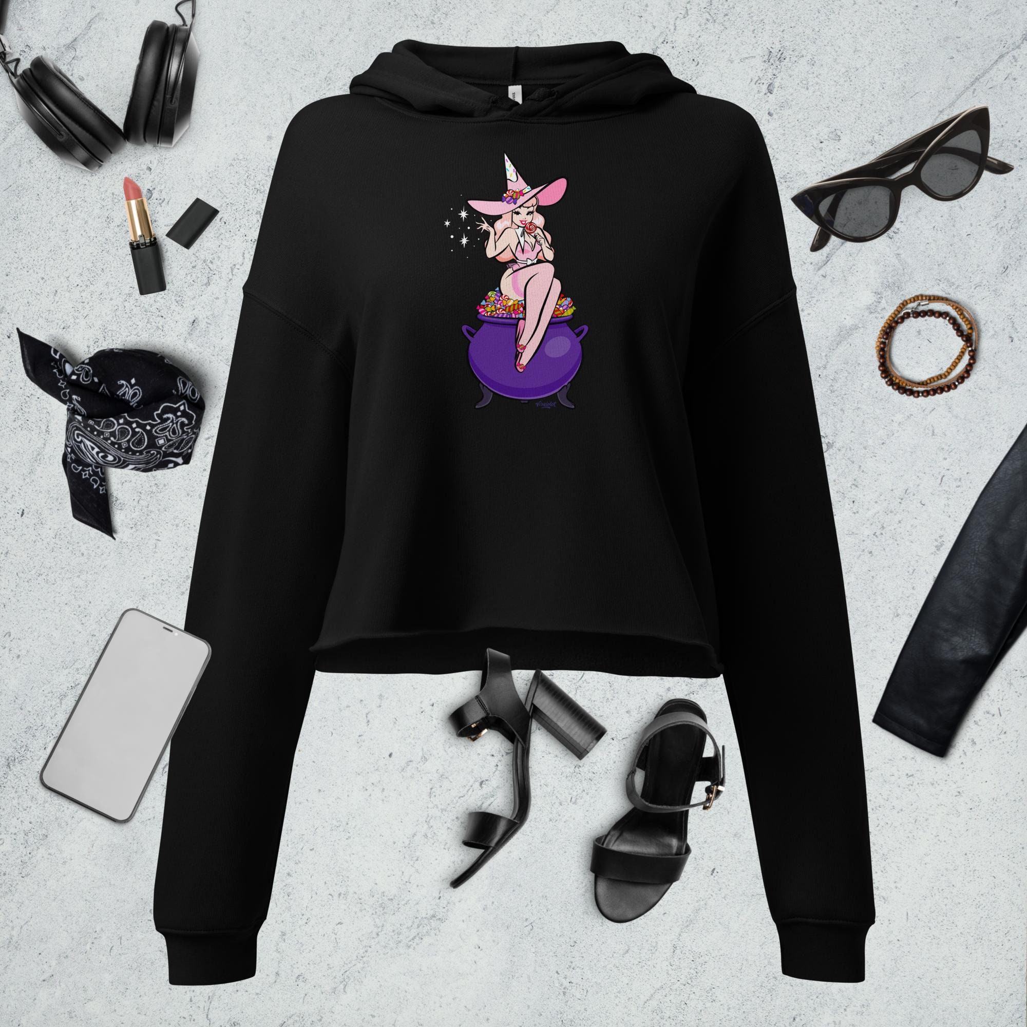 Embrace your magical side with this adorable, pastel goth-inspired crop hoodie. Featuring an enchanting graphic of a witch with the phrase "One Sweet Witch," this hoodie is a perfect blend of cute and spooky. The raw hem and dropped shoulder cut give it a modern, casual look, while the soft, comfortable fabric makes it a go-to for any day. It’s the perfect piece for anyone who believes in a little bit of magic and a whole lot of style.