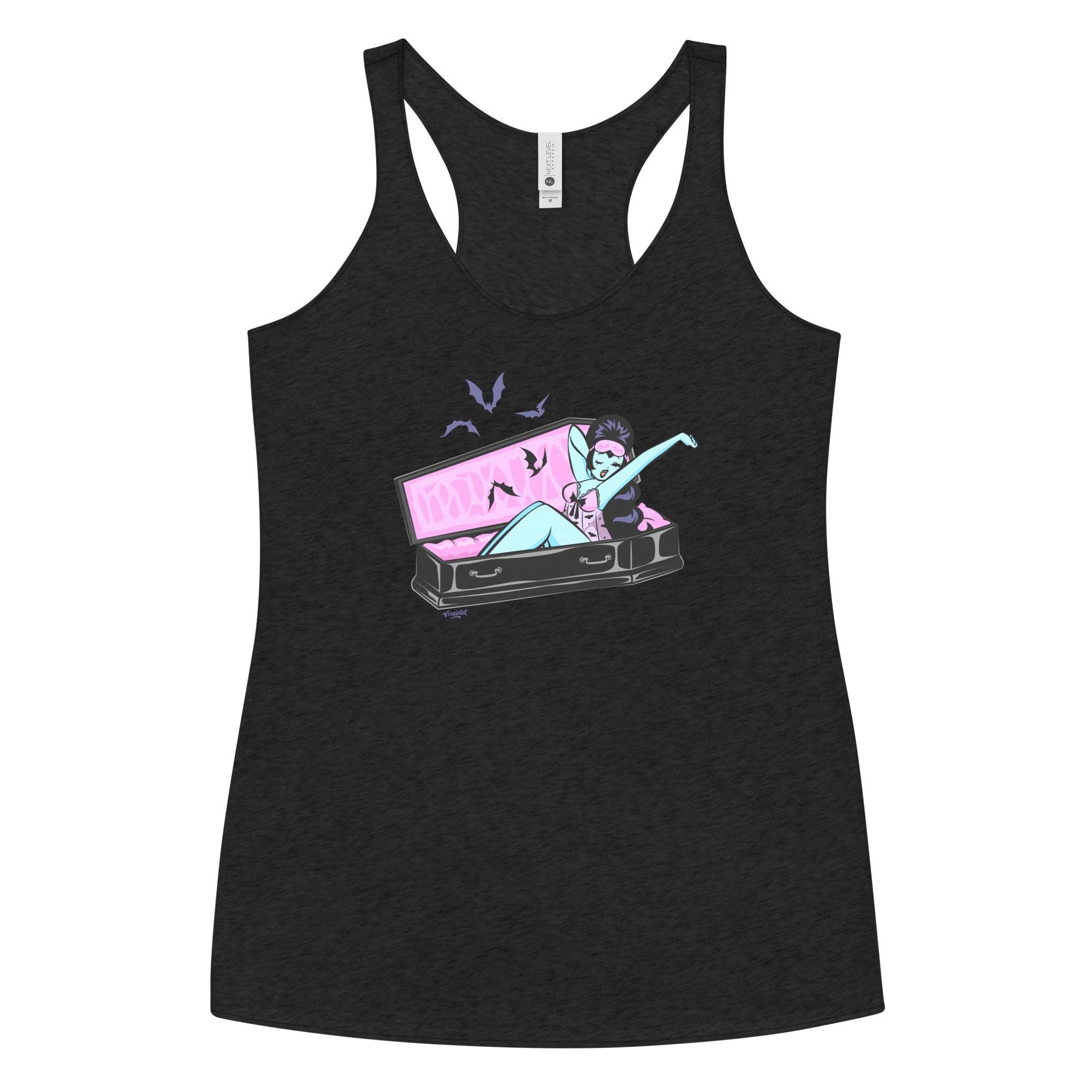 This racerback tank is soft, lightweight, and form-fitting with a flattering cut and raw edge seams for an edgy touch.