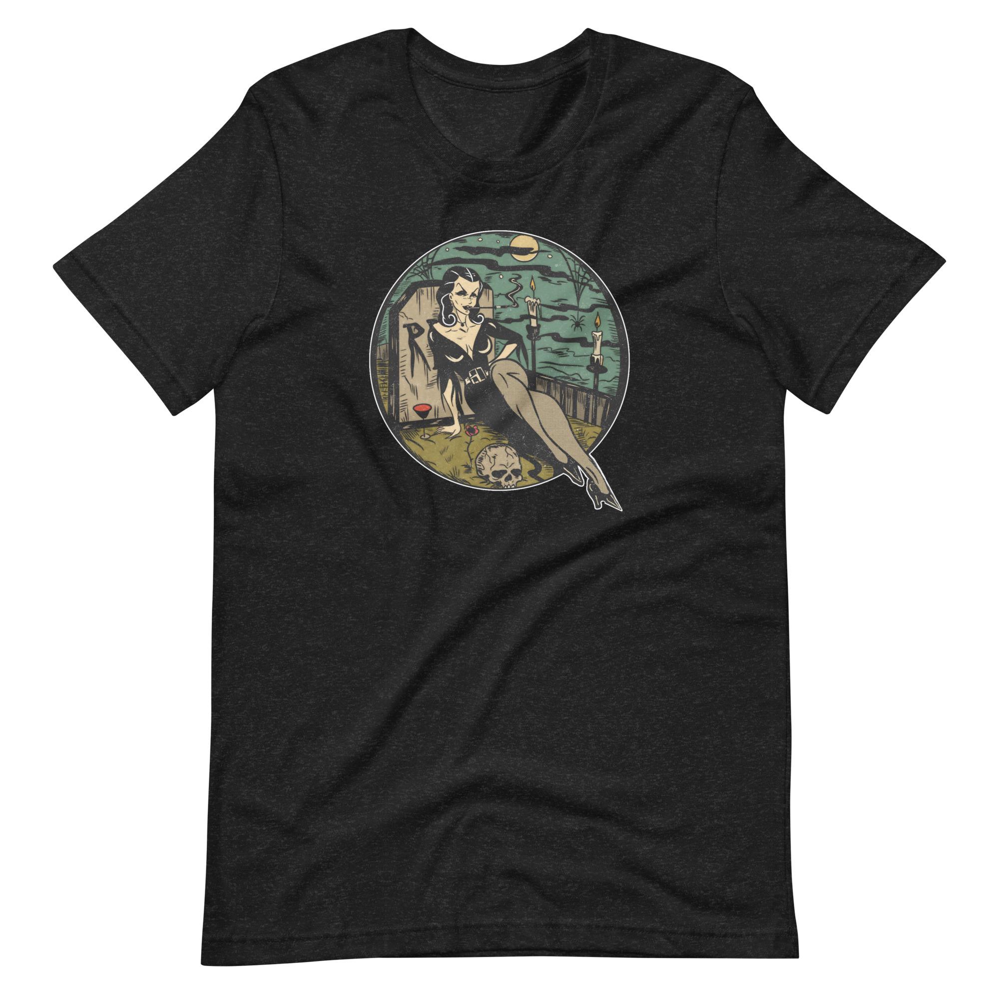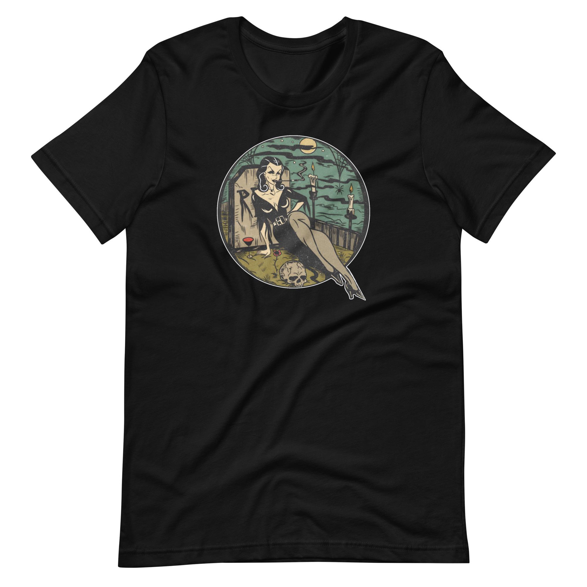 This isn't just a t-shirt; it's a statement. Made from a super-soft and lightweight fabric, this shirt has the perfect amount of stretch to keep you comfortable while you're haunting your local coffee shop or just chilling. With a classic fit that's comfortable and flattering, this tee is a must-have for anyone who appreciates the dark side.