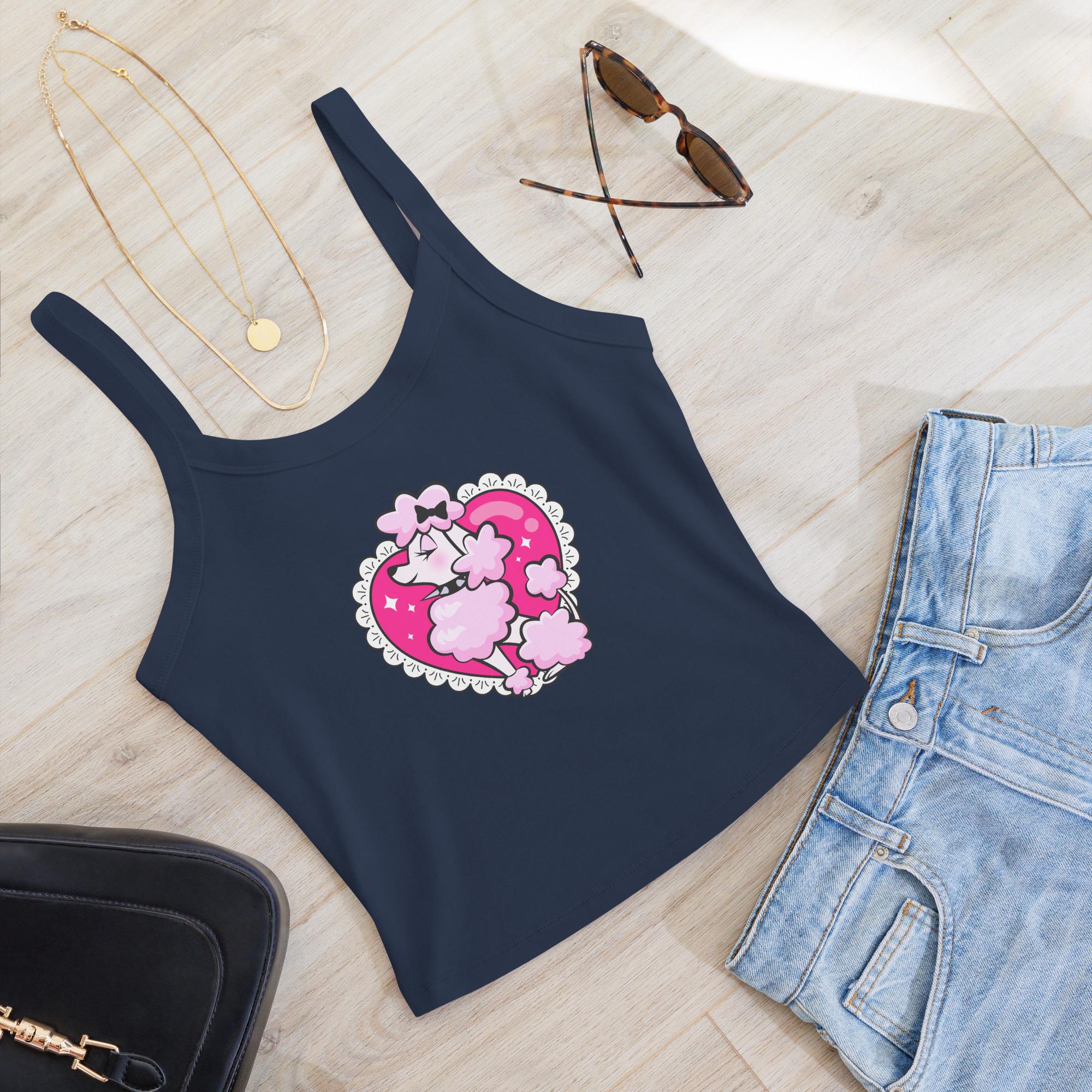 Retro Kawaii Pink Poodle Graphic Tee: Y2K Top | Women’s Micro-Rib Tank Top