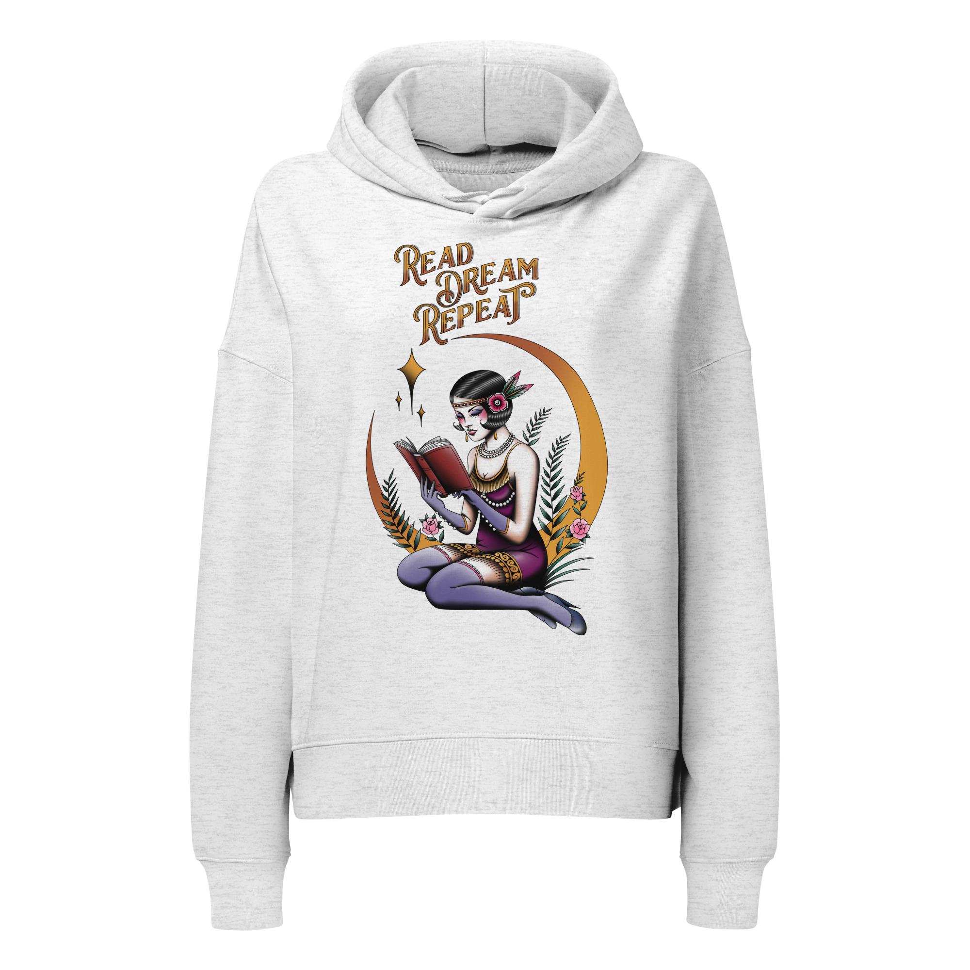 This hoodie is for the girls who'd rather get lost in another world than deal with this one. It features a glam, art-nouveau-style flapper who’s ditching the party to read on the moon, surrounded by flowers. It's giving "romantic main character" energy with a "do not disturb" sign.