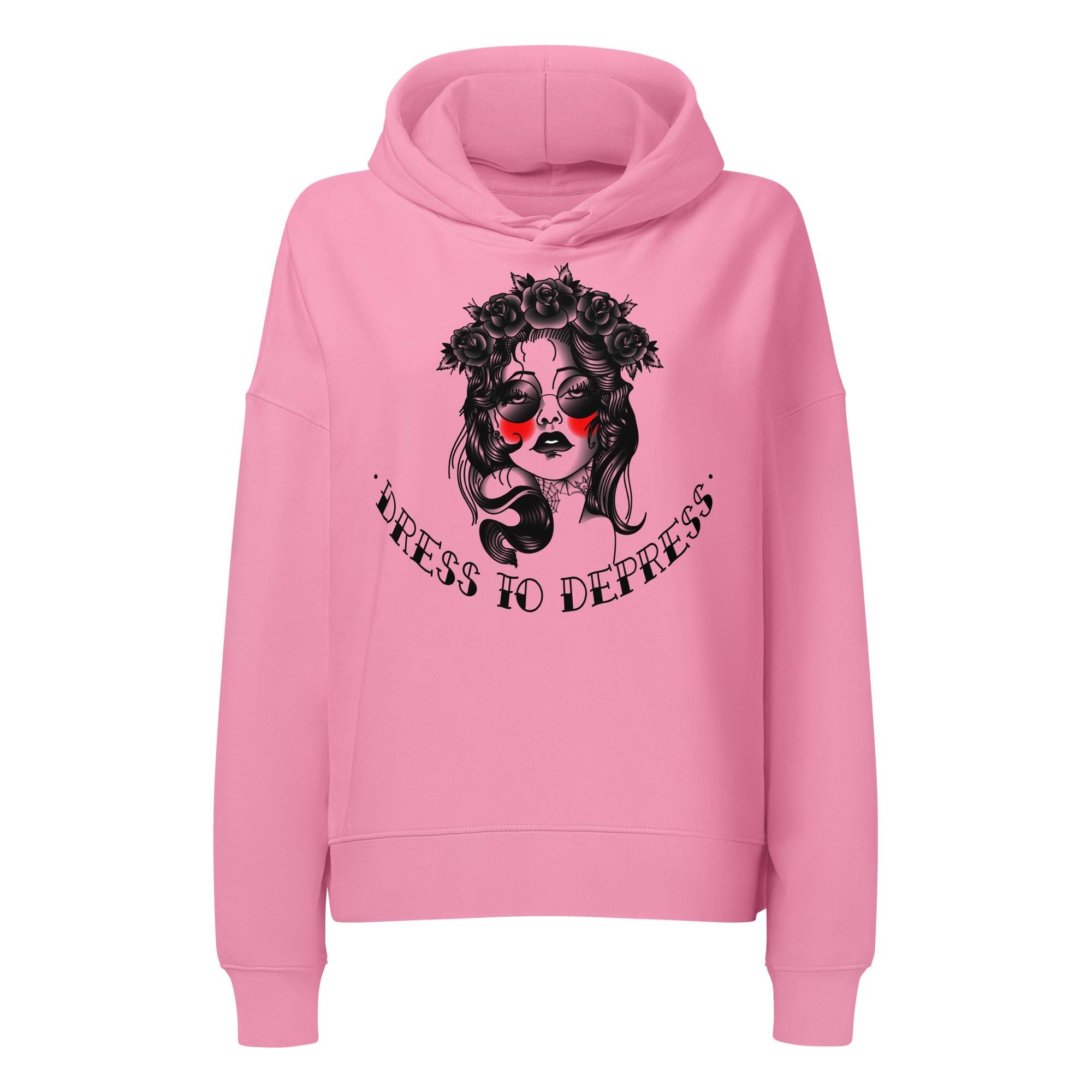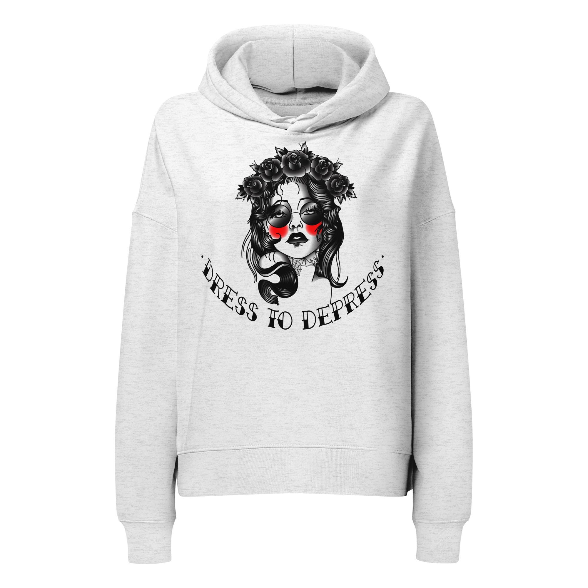 This hoodie is for the days when you're done faking it and ready to embrace your beautifully morbid side. It flashes a stunning, macabre-glam graphic—complete with a black rose crown and spiderweb tattoo—that says what we’re all thinking: "Dress to Depress."